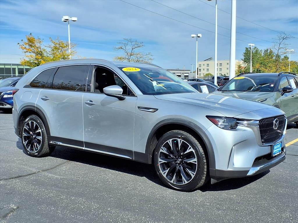 Sonic Silver 2024 Mazda CX-90 PHEV Premium AWD 8-Speed Automatic 2.5L I4 DOHC 16V LEV3-SULEV30 ORIGINAL MSRP $55,905, 12 Speakers, 4-Wheel Disc Brakes, ABS brakes, Air Conditioning, AM/FM radio: SiriusXM, Auto High-beam Headlights, Automatic temperature control, Brake assist, Delay-off headlights, Dual front impact airbags, Dual front side impact airbags, Electronic Stability Control, Emergency communication system: MAZDA CONNECT, Exterior Parking Camera Rear, Four wheel independent suspension, Front dual zone A/C, Fully automatic headlights, Heads-Up Display, Heated Front Bucket Seats, Heated front seats, Infotainment System Voice Command, Mazda Navigation System, Memory seat, Navigation system: MAZDA CONNECT, Pandora Internet Radio Integration, Panic alarm, Power driver seat, Power Liftgate, Power moonroof, Power steering, Power windows, Radio: AM/FM w/HD/Bose 12-Speaker Audio System, Rear air conditioning, Rear window defroster, Remote keyless entry, Speed control, Speed-sensing steering, Steering wheel mounted audio controls, Traction control, Wheels: 21" x 9.5J Aluminum Alloy.