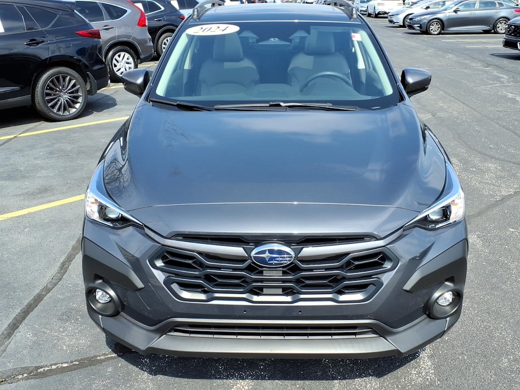 Gray 2024 Subaru Crosstrek Premium AWD Lineartronic CVT 2.0L 4-Cylinder DOHC 16V 10-Way Power Driver's Seat, 4-Wheel Disc Brakes, ABS brakes, Air Conditioning, All-Weather Package, AM/FM radio: SiriusXM, Anti-whiplash front head restraints, Auto High-beam Headlights, Auto-Dimming Exterior Mirror w/Approach Light, Auto-Dimming Mirror w/Compass & HomeLink, Blind Spot Detection w/Rear Cross-Traffic Alert, Brake assist, BSD/RCTA & Moonrf & All Weather Pkg & Pwr Dr. Seat, Crosstrek Mirror Package, Dual front side impact airbags, Electronic Stability Control, Emergency communication system: STARLINK Safety and Security (Subscription Required), Exterior Parking Camera Rear, Four wheel independent suspension, Front fog lights, Heated Exterior Mirrors, Heated Front Seats, Heated Wipers, Panic alarm, Power Moonroof, Power steering, Power windows, Radio: Subaru STARLINK 11.6" Multimedia Plus Sys, Remote keyless entry, Security system, Speed-sensing steering, Traction control.